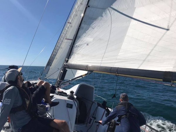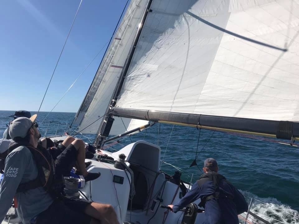 Guter Start für die Haspa Hamburg: als 2. Schiff sauber über die Linie! Heute Mittag um 1400 Ortszeit fiel der Schuss für die 2. Startgruppe des „Cape2Rio2020“ bei traumhaften Segelbedingungen vor dem Panorama des Tafelbergs. Die kleineren Schiffe aus der 1. Gruppe sind schon seit einer Woche auf See und biegen jetzt auf Höhe der Küste Namibias eines nach dem anderen Richtung Brasilien ab. Während die sich bislang durch ziemlich löcherige Windfelder kämpfen mussten, sieht es für unsere Haspa gut aus in den nächsten Tagen: 15 – 20 Knoten von Achtern unter der Küste. Mit Bildern vom Start versorgten uns der RCYC live, Mathias Jancke aus seinem Urlaub und Crewmitglied Sebastian Ropohl von Bord – Danke. Das neue Segel-Setup mit Jibtop und Stagsegel bewährt sich schon und sieht bestens aus.