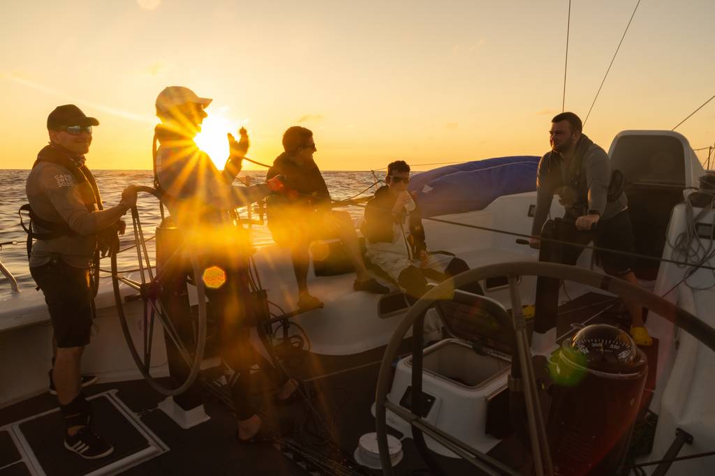 So langsam haben wir uns alle an das Bordleben gewöhnt und sind in unserem Wachrhythmus angekommen. Zahlreiche Segelwechsel führen zu immer routinierteren Abläufen zwischen Pit und Vorschiff. Auch die Abstimmung zwischen Rudergänger, Segeltrimmern und Grinder werden immer besser, sodass wir bereits Surfs mit über 21 Knoten verzeichnen konnten.