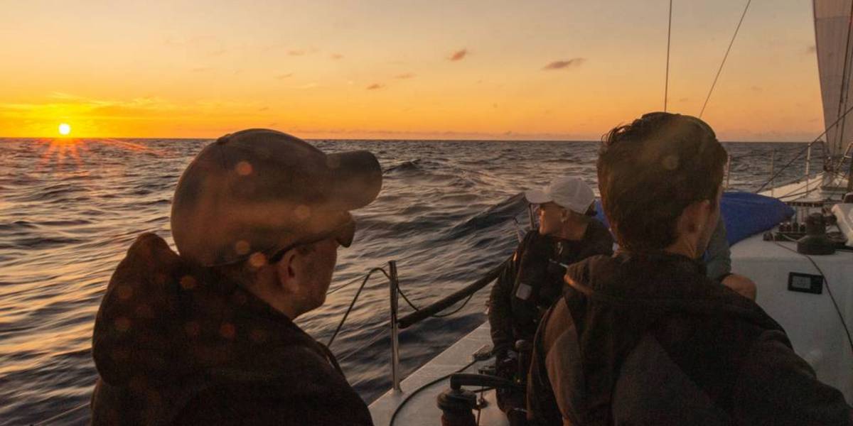 Auch heute ging es bei traumhaften Segelbedingungen bei 12 bis 20kn Wind in Rauschefahrt weiter Richtung Westen, sodass wir um 05:15 Uhr UTC den Nullmeridian überqueren konnten. Dies mussten wir natürlich gebührend feiern, sodass kurzerhand ein