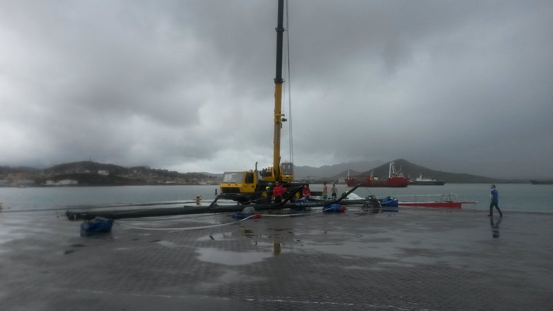 So wurde am Dienstag das Rigg in strömenden Regen gelegt, repariert und wieder gestellt. Dass das Rigg innerhalb weniger Tage repariert werden konnte, ist der tatkräftigen Hilfe der deutschen Marinabesitzer Lutz und Kai, sowie den tapferen Arbeitsbienen in Hamburg zu verdanken. Ohne die Marinabetreiber währen wir aufgrund der Sprachbarriere und ohne Kenntnisse der örtlichen Gegebenheiten aufgeschmissen gewesen. Sie waren es, die uns einen geeigneten Kran und einen Platz im Zollhafen organisieren konnten. Die Shorecrew in Hamburg schickte uns ein neues Crewmitglied mit Ersatzteil im Gepäck. Zu allem Überfluss ging das Gepäckstück mit einem Spezialwerkzeug in Lissabon verloren, konnte aber rechtzeitig nachgeschickt werden.