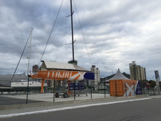 Wie sich herausgestellt hat, sind unsere Bekannten aus Ilha Santa Catarina del Norte, Edmundo und Guzman, hier federführend. Am kommenden Wochenende kommen sie wieder nach Itajai. Dann werden sie auch bei Max auf der HASPA Hamburg vorbeischauen. Sie sind sehr daran interesiert, was der HVS macht, und wer weiss, vielleicht kriegt Max ja auch Gelegenheit auf der SOTO 40 ein paar Trainingsschläge mit zu segeln.