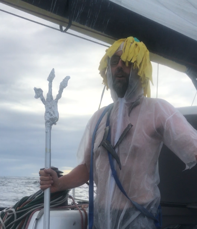 Leicht platt von der Sonne begann die nächste Ruhephase, bis Neptun am Nachmittag das Schiff betrat! Die Crew wurde zu harten Fakten und Zahlen der Haspa ausgequetscht. Wer falsch antwortete, wurde mit stinkenden Flüssigkeiten zur Rechenschaft gezogen. Die meisten richtigen Antworten wurden aber auch mit den Flossen einer Goldmakrele belohnt! Wer in naher Zukunft die Crew und Neptun auf Fotos bestaunen darf, wird sich glücklich schätzen, der Spaß war groß und die Outfits wunderschön. Kleiner Tip: Dieses Jahr sind Kokusnussbikinis voll in Mode.