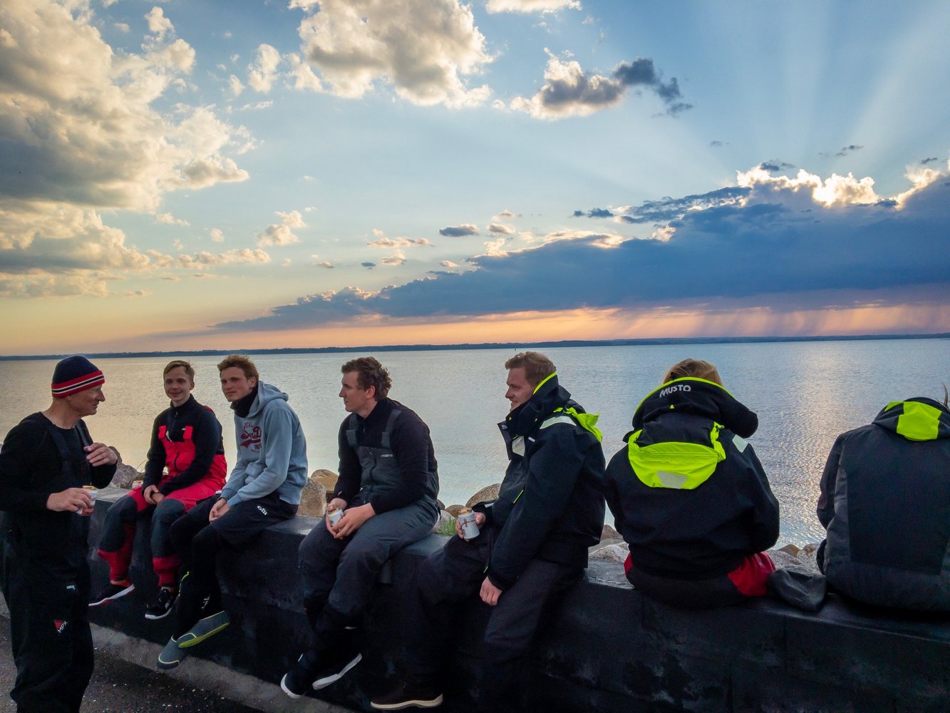 Nachdem wir am Samstagmorgen (alle) eine Stunde länger geschlafen haben, werden flott Brötchen geholt und aufgrund des Regens unter Deck gefrühstückt. Ein schneller Blick aufs Wetter zeigt: Keine Eile vonnöten, heute beglückt uns erneut ein Gewitter, das wir einstimmig im Hafen aussitzen wollen. So stehen bis 15.30 Uhr wenig spannende Aufgaben unter Deck an. So wenig spannend, dass aufgrund des Wetters und des drohenden Hafentags, sollte das Wetter nicht besser werden, die Stimmung leicht kippt. Doch schnell wird uns klar, dass wir auf hohem Niveau klagen: Schließlich sind wir Segeln! Um 16.00 Uhr legen wir ab mit Kurs auf Marstal und die Stimmung ist wieder da, wo sie hin gehört. Das Wetter stellt sogleich seine Unberechenbarkeit unter Beweis: Entgegen der Vorhersage segeln wir bei stabilen 26-32 kn konstant unsere 8 kn im zweiten Reff ohne Genua bei raumem Wind. Nach knapp 10 nm wird der Radaddel angeschmissen, durchs Fahrwasser vor Rudkøbing wird motort. Alle sind bei guter Laune, ob bei Arbeiten unter Deck oder an Deck. Zwischendurch wird unter Einbezug der Ereignisse dieser Tour auf hochwissenschaftlichem