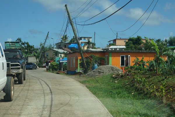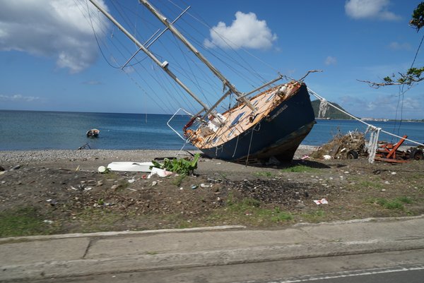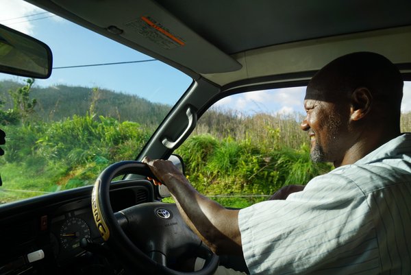 Liegt es an unserer europäischen Erziehung oder wieso verspüre ich den Farbigen gegenüber ein gewisses Misstrauen? Oder ist es nur, weil sie anders drauf sind- einfach völlig tiefenentspannt? Oder weil sie gerade so viel verloren haben, während wir hier auf unserer Rennyacht thronen? Einklarieren und auf geht es ins Onshore Abenteuer. Der Stolz, mit dem der Guide über seine Insel berichtet, ist fesselnd, die Verwüstung, die wir zu sehen bekommen, niederschmetternd. Gut zwei Drittel der Häuser sind beschädigt, ohne Dach oder zum großen Teil vom Hurricane Maria einfach weggeblasen worden. Dennoch wirken die Menschen positiv und wir fühlen uns nicht wie Katastrophentouristen. Es geht in die Berge- Ziel ist ein Wasserfall. Hier und da hält der Fahrer an, zupft Lemongrass aus der Erde, eine Ingwerwurzel, oder Zuckerrohr, diverse Früchte.... Der
