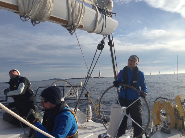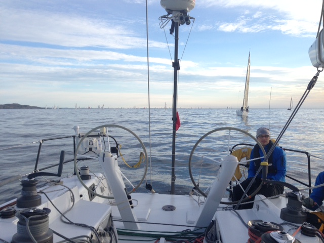 Hinter uns liegt ein toller Regattastart vor großartiger Kulisse und unter blauem Himmel, superspannende Wendemannöver in z.T. engen Gewässern bei bis in Böen 4-5 Bft und etwa 1000 anderen Schiffen um uns rum, 2-5 Genua-Wechsel, dann Abflauen bis auf 0, Winddreher in der kurzen Nacht, die nur etwa 2 Stunden diesen Namen verdient hat, Reacher, A1 und jetzt gerade G1... Die Sonne ist schon längst wieder hoch am Himmel und die Stimmung auch...