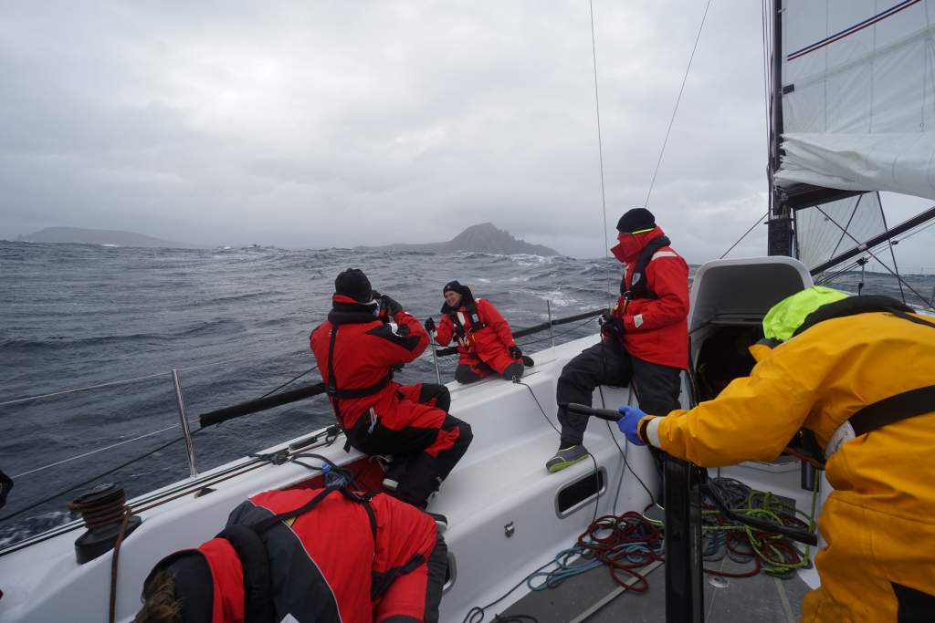 Mit dann kleiner Besegelung konnten wir bei kräftigen Winden die Wellen optimal nutzen und um die südlichste der Inseln herumsurfen. Mit drittem Reff und unter Genua 5 ließ sich auch die Rückreise sicher bewerkstelligen. Bei Kaiserwetter und perfektem Segelwind ging es dann zwischen den Inseln Feuerlands halbwinds und raumschots zurück in das uns inzwischen bekante Puerto Williams. Begleitet wurden wir dabei von Pinguinen, Albatrossen, unzähligen Walen mit ihren charakteristischen Atem-Fontainen und von Delfinen. Das Ganze muss man sich vor der schier unglaublichen Kulisse des im Abendlicht versinkenden Feuerlands vorstellen!