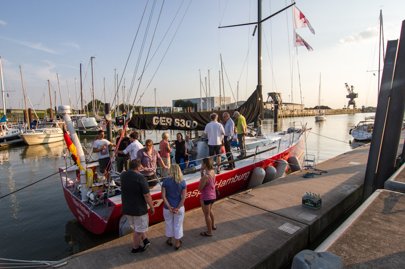Wie vermutlich ein Großteil aller Segelreisen beginnt auch unser Abenteuer mit letzten Vorbereitungen an Bord - von mechanischen Reparaturen über die Neuinstallation von Software (have you tried turning it off and on again?) bis zur letzten Charge frischen Proviants. Etwas außergewöhnlicher war die Abschiedsfeier mit vielen Freunden und Verwandten der Mitsegler, die sich bei guter Verpflegung teilweise zum ersten Mal auf der Haspa umsehen konnten und nun eine viel bessere Vorstellung davon haben, worüber wir in unseren Bordberichten so schreiben werden.