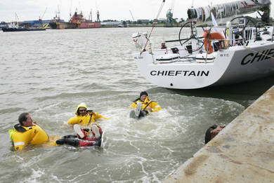 Hamburg, 03. Juli 2007 – Vollbärtig und abgekämpft klopfte die internationale Crew ihrem Skipper Ger O´Rourke auf die Schulter, nachdem der Zielschuss gefallen war. 16 Tage, 14 Stunden, 57 Minuten und vier Sekunden hatte die irische Yacht „Chieftain“ für die 3600 Seemeilen lange Strecke von Newport (USA) bis in die Elbmündung gebraucht. Erleichtert sprangen die elf Jungs auf den Ponton in Cuxhaven, machten ihr Schiff fest und warfen sich anschließend gegenseitig ins Hafenbecken. "When I go, you go", wehrte sich der Skipper noch und nahm gleich drei Crewmitglieder mit ins Hafenwasser.