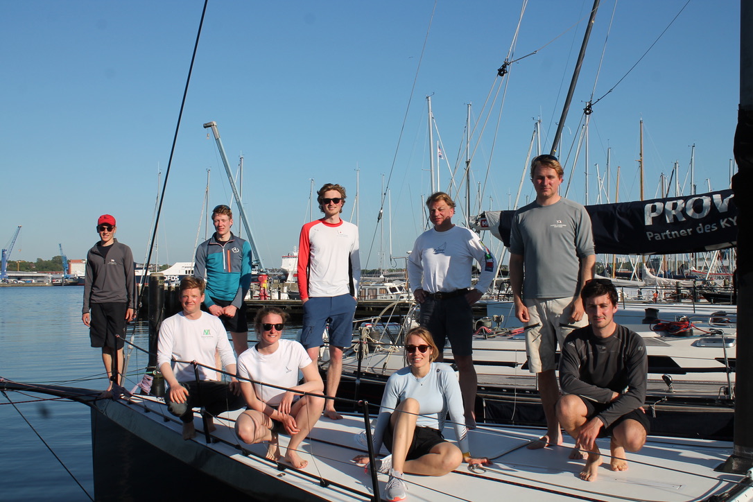 Marvin, unser Navigator und Regattastratege an Bord, steckte zusammen mit Max ein paar Kurse ab. Dann ging es los. Zunächst noch mit moderaten Winden setzte im Laufe des Tages ein guter Trainingswind ein. Windstärken zwischen 8 und 15 Knoten - im Laufe des Tages noch verbunden mit strahlendem Sonnenschein in der Förde lieferten Segelbedingungen wie aus dem Bilderbuch.