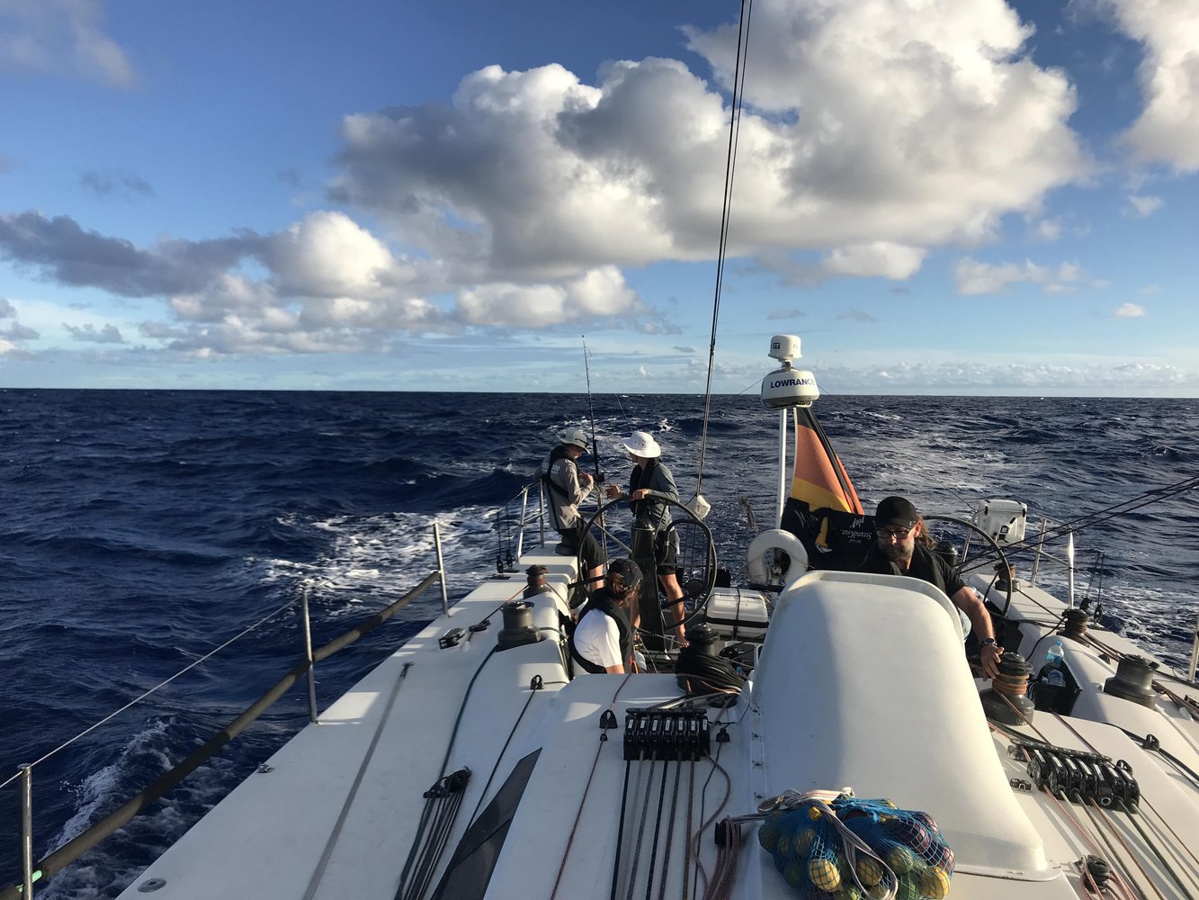 Ansonsten ist es leider etwas schwachwindig heute, was der Wetterbericht aber schon erahnen ließt Der totale Stillstand ist aber ausgeblieben und so konnten wir bei 8 Knoten Windspeed trotzdem bis zu 5,5 Knoten Boatspeed erreichen, sodass der Diesel für den Schlussspurt gespart werden kann. Nach aktuellem Wetterbericht erwarten uns vor den Azoren nämlich noch ca. 160 Seemeilen Flaute, die es irgendwie zu passieren gilt.