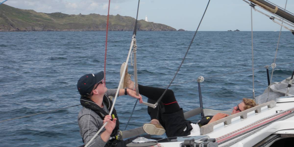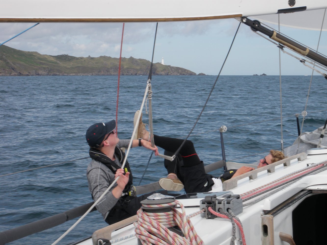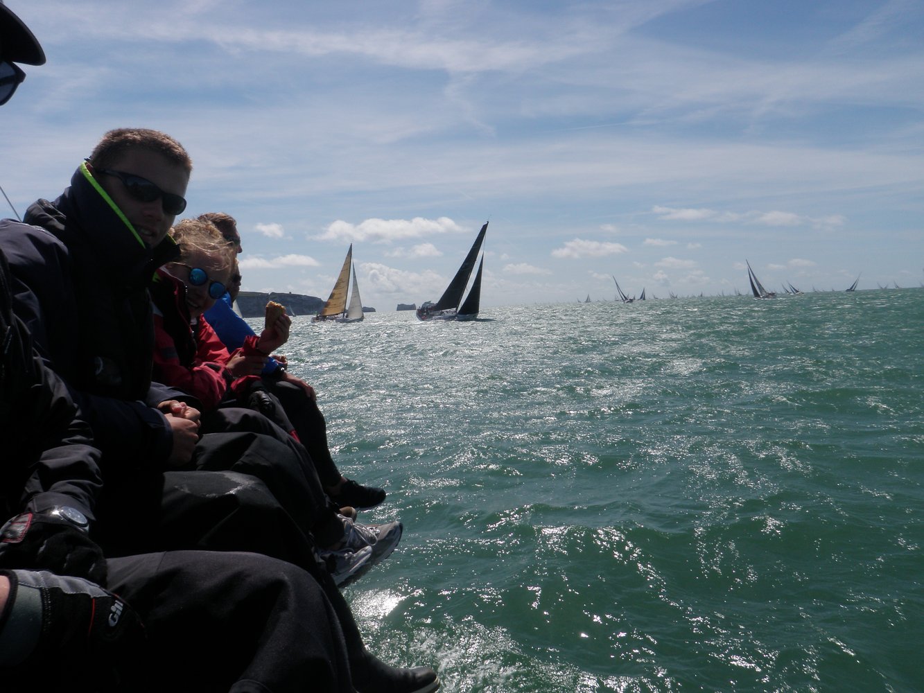 We had a wonderful start to the Rolex Fastnet Race 2017. Our tactics lead us to a good position. We tacked westward to the Needles with the tide. A Maxiracer passed us at an impressive speed. Before the start we could see six people just engaged in handling the jib.