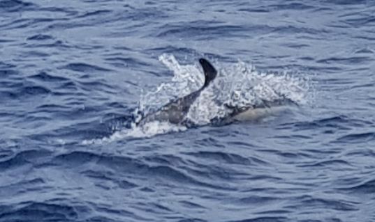 Nix war mit der angekündigten Abkühlung. Wieder 25°C Luft und Wasser, und Schiff und Mannschaft schwitzen wie die Kesselflicker. Als wären wir auf der Atlantik-Südroute, verbrauchen wir Sonnencreme und Trinkwasser im großen Stil, wie die Ladies den Rosé und Weißwein auf namhaften Ferieninseln, wie wir hören. Delfine gehören zu unseren täglichen Begleitern, wir lassen es uns gut gehen und genossen heute hausgemachte Pasta al hombre nuevo, frisch zubereitet vom Chèf de Cuisine persönlich und wahrlich schmackhaft. Es erreichten uns rührende Nachrichten unserer Lieben, die unser ohnehin gut ausgeprägtes Dauergrinsen in kreisrunde Dimensionen wachsen ließen. Wir freuen uns umso mehr auf Euch alle, und vermissen Euch selbstverständlich sehr. Euch alle und ja, alles andere Schöne und Leckere und Kühle in unserer Heimat auch. Und Dich, lieber Niko, auch, Du fehlst hier eindeutig.