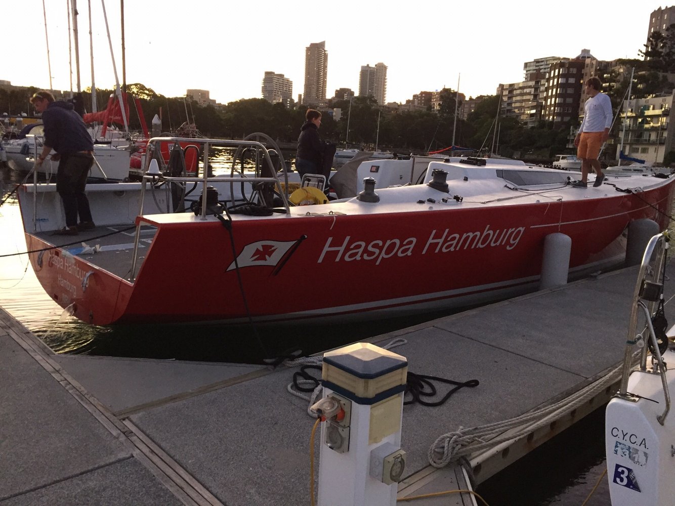 Heute war es endlich soweit: Der australische Zoll hat uns die Haspa Hamburg freigegeben, sie ist bereits sicher im CYCA angekomen. Die separate Mast-Transportbox ist auch schon unterwegs und wir machen uns schnellstmöglich an die Arbeit, damit aus dem hilflosen Frachtgut wieder ein selbstständiges Hochseesegelschiff wird.