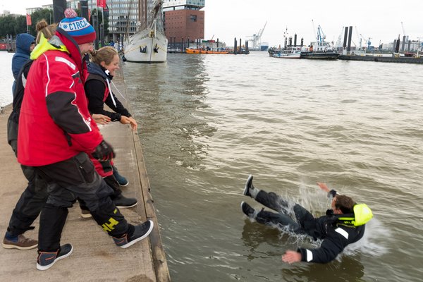 Direkt an der Cap San Diego dann der erlösende Ton: Zieldurchgang! Gewonnen nach gesegelter Zeit.