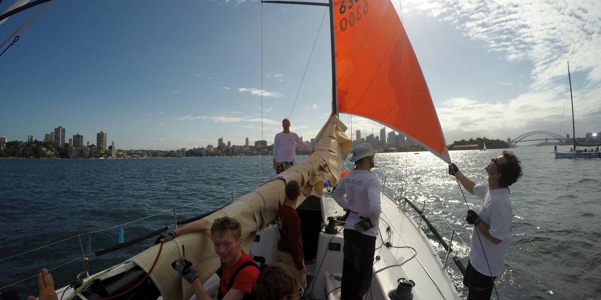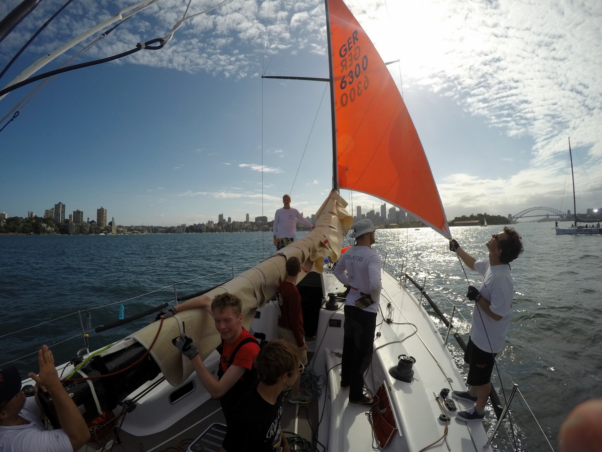 Mittlerweile kamen wir aus dem Port Jackson und die See wurde etwas rauer. Allgemein anerkanntes Indiz für eine starke Welle auf der Kreuz ist seit heute, dass die USB-Verbindung zur externen Wlan-Antenne kurz abbricht. Inklusive der Systemsounds "dadumm" und "dudamm". Adrian, einer unserer hoch engagierten Kontakte hier in Sydney, erklärte uns das so: Anders als auf dem Atlantik mit seiner hohen Dünung kann es hier passieren, dass die Welle einfach aufhört und man eben hinten runterfällt. Klingt logisch.
