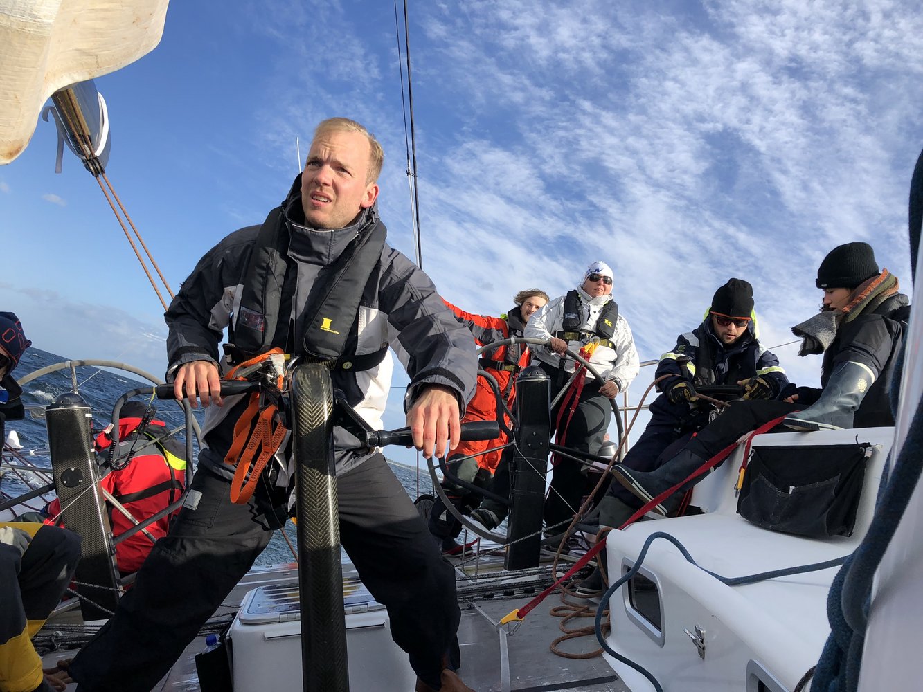 Die Crew, ein bunter Mix aus Jüngeren und Älteren traf sich am Freitagabend in Kiel und bezog die Kojen für die kommenden zwei Tage. Aufgrund von starkem Wind und früher Dunkelheit verbrachten wir den ersten Abend bei leckerem Flammkuchen unter Deck und lernten uns kennen.
