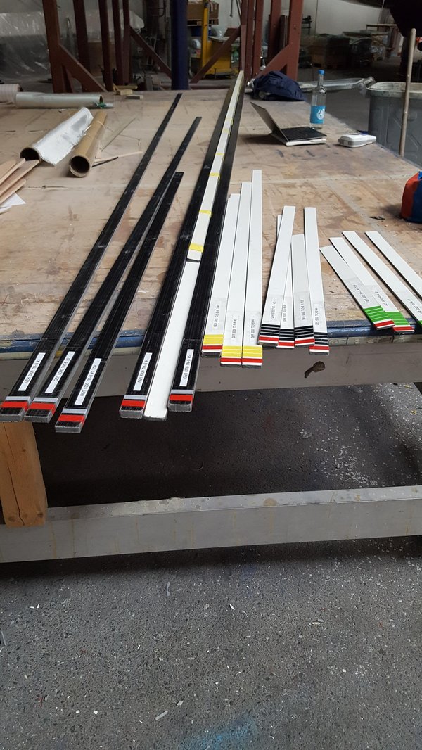 Abschließend gibt es noch ein Rätsel, das über Kommentarfunktion gelöst werden kann: Was haben die Farbcodes und Beschriftungen auf den Segellatten für eine Bedeutung?