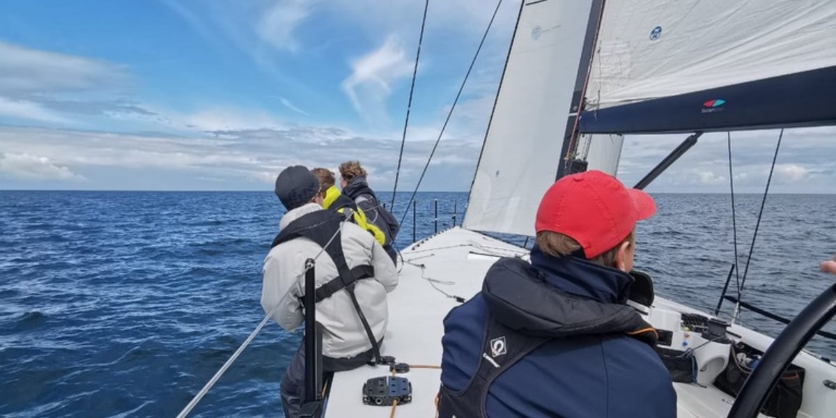 Am nächsten Morgen legen wir bereits um 10:30 Uhr ab. Heute fahren wir in veränderter Besetzung. An Bord sind von den 12 Regattateilnehmern "nur" 8 Crew. Einige wenige konnten klausurbedingt noch nicht dabei sein. Und da wir im Fastnet-Race mit wechselnden Wachen fahren, ist es wichtig, daß möglichst viele Positionen mindestens doppelt besetzt werden können. Außerdem geht es heute verstärkt in das „Finetuning“. Gespräche werden auf reine Manöverabsprachen reduziert. Alle sitzen auf der Kante, der Bootstrimm spielt auf diesem Boot eine übergeordnet wichtige Rolle. Die Störtebeker ist extrem reaktionsstark bei der Verlagerung von Gewicht. Ein Riesenvorteil, wenn die Disziplin stimmt. Konsequentes trimmen auf der Kante, aktives Fahren von Segeln und Backstagen, ununterbrochene Kommunikation zwischen Großtrimm und Steuer, Vorsegeltrimm und Vorschiff, Vorsegeltrimm und Steuer usw. Bei jeder Wende wird der Wechsel von denjenigen, die auf der Kante sitzen angezählt und dann im geschlossenen Sprung von einer Seite auf die andere genutzt, um die Geschwindigkeit im Boot zu halten. "Die Wende war zu langsam, die Halse war zu schnell, das Segel kann noch schneller dichtgenommen werden ...." die Anzeigen am Mast zeigen unmißverständlich auf, ob wir uns noch verbessern können oder nicht - und natürlich geht es immer noch besser. Unglaublich, wie das Schiff auf nur kleinste Änderungen reagiert, schneller wird oder langsamer. Die Mannschaft ist konzentriert. Die inzwischen an Bord gebrachten fehlenden Segel, wie z.B. der Code-Zero werden auf entsprechenden Kursen ausprobiert. Mit jedem Manöver werden die Arme immer länger und die Abstände zwischen den Tonnen – also die „Kurs-Beine“ – immer kürzer.