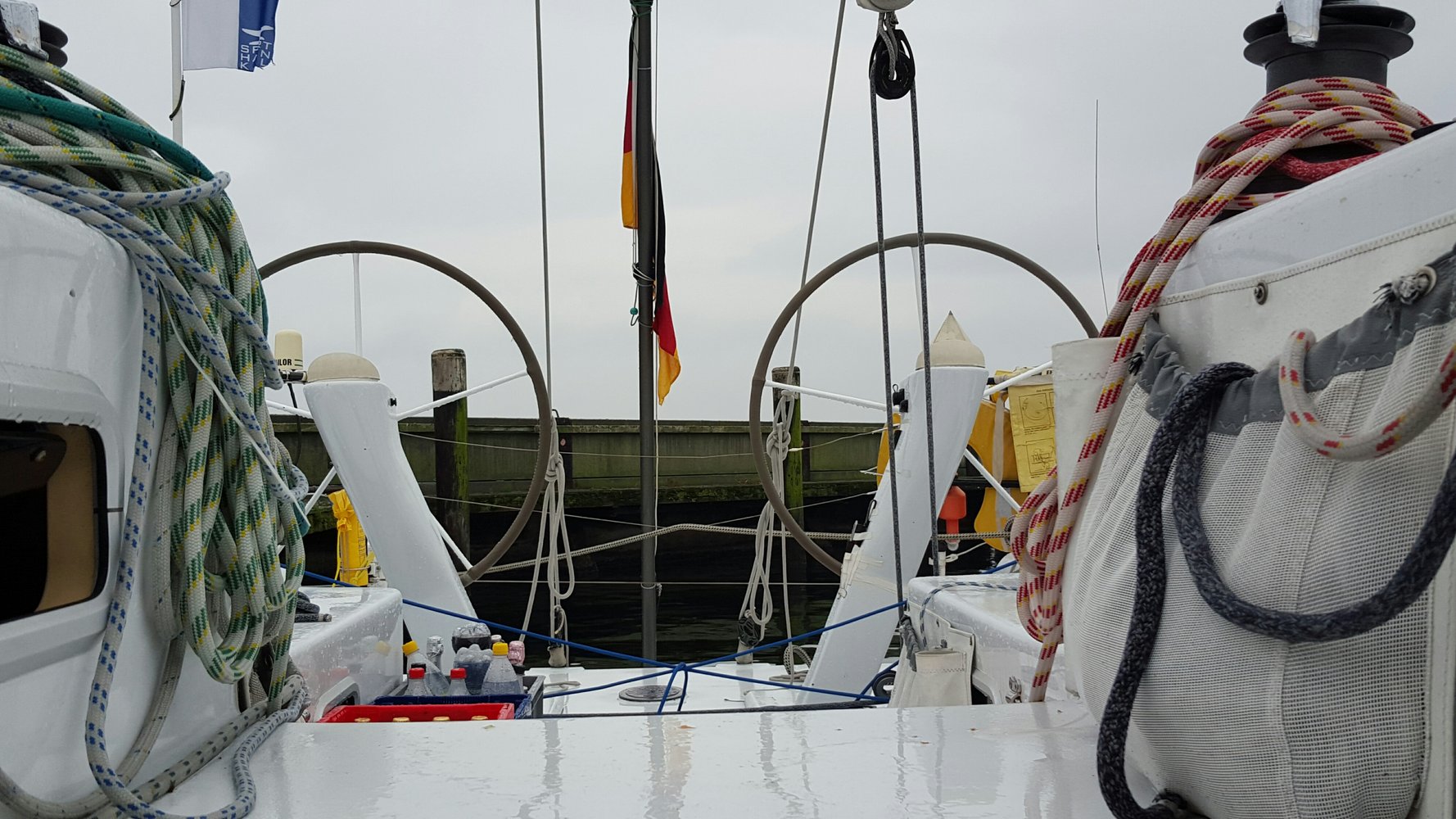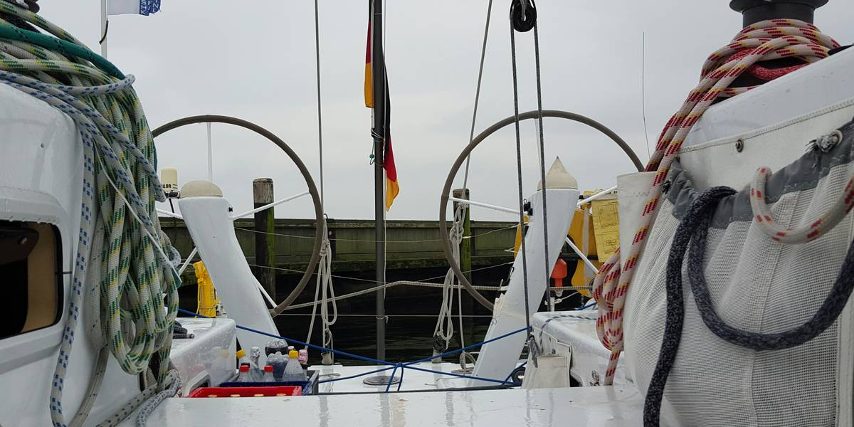 Es regnet, alles ist nass, das Großsegel fast angeschlagen. Der Steg erfordert mit jedem Landgang einen umfangreichen Pützeinsatz und bringt ein herbes Aroma mit. Es wird Zeit, dass wir uns auf den Weg machen.