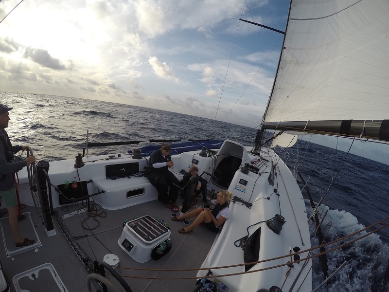 Nach vier Nächten auf See tauchte mit dem Sonnenaufgang das erste Mal wieder Land am Horizont auf: Teneriffa erhob sich mit seinem "Teide" aus den Wolken empor! Wir segelten bis unter Land und mussten dann leider auf die Diesel-Genua umsteigen, da der Wind uns gänzlich im Stich ließ. Wir ließen Teneriffa backbord an uns vorbeiziehen und nahmen Kurs auf La Gomera, wo wir nach insgesamt 100 Stunden auf See in der Marina festmachen konnten. Mit Ausnahme einer gebrochenen Segellatte in der G4,5 hatten wir glücklicher Weise keine Verluste zu beklagen. Nach dem Anlegergetränk wurde das Schiff klariert und passend zum Sonnenuntergang sprangen wir dann ins Meer. Frisch geduscht und herausgeputzt stillten wir unseren Hunger mit