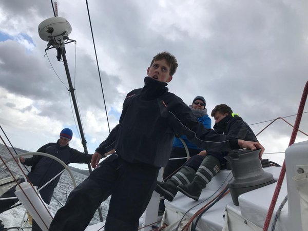 Am Freitagabend ging es also, nachdem das Schiff regattaklar gemacht wurde, in Richtung Glücksburg. Unterwegs konnten wir, dank des tollen Segelwindes, den A3 setzen und glitten so mit 10kn Fahrt durch die Nacht. Ein erstes kulinarisches Highlight war dabei Katrins berühmte Currywurst. Am Samstag hatten wir ebenfalls einen tollen Segeltag. Unterwegs wurde uns gezeigt, wie schön Segeln in Norddeutschland sein kann. Eine Regenfront zog einmal durch die Flensburger Förde und verpasste uns eine kräftige Dusche, über 30kn Wind inklusive. Nach diesem trockenen Sommer sorgte dieses Wetterereignis tatsächlich für gute Stimmung! Vor und nach der Wolke wurden A3 und G3 gesetzt. Als Mittagssnack gab es Frikadellen, ein weiteres kulinarisches Highlight! Nach erfolgreichem Training ging es dann zurück in den Hafen, wo die gesamte Crew noch die ein oder andere Stunde Schlaf nachholte, schließlich waren wir die Nacht zuvor erst um halb 3 angekommen und etwas später in die Koje, der Wecker klingelte jedoch schon wieder um 7Uhr.