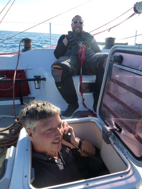 Nach 8 Tagen zwischen Kreuz und Flaute haben wir seit gestern endlich achterliche Winde! Zunächst standen diese auch noch genau auf der Kurslinie, so dass wir vor dem Wind kreuzen mussten. Aber heute Morgen pünktlich zum Sonnenaufgang passte dann alles: Vollzeugbrise, strahlender Sonnenschein und eine erfreulich ruhige See machten das Segeln unter dem A6 zu einem wahren Vergnügen. Das mussten wir uns in der Nacht davor allerdings hart verdienen, denn der Südpazifik hatte sich in ein Tintenfass verwandelt. Kein einziger Stern war zu sehen und man hatte den Eindruck, allein das Meeresleuchten reiche schon aus, um einen zu blenden. Dazu drehende Winde direkt von hinten. Umso größer war die Freude, bei dem Telefonat mit zuhause heute Morgen von den traumhaften Bedingungen berichten zu können. Zur Zeit rauschen wir bei etwa 20 kt Wind unter Gennaker dahin. Der aktuelle Geschwindigkeitsrekord wird von Paul bei 14,4 kt gehalten. Speed, den wir gut gebrauchen können, denn wir befinden uns schon wieder auf der Flucht vor einem neuen Hoch, das uns in ein paar Tagen den Weg nach Süden abzuschneiden droht. Dieses ist auch der Grund dafür, dass wir uns bedeutend weiter in die 40ties begeben müssen, als das ursprünglich der Plan war, um konstantere Winde zu erhalten. Drückt uns also die Daumen, denn die kommende Nacht scheint wieder sehr dunkel zu werden.