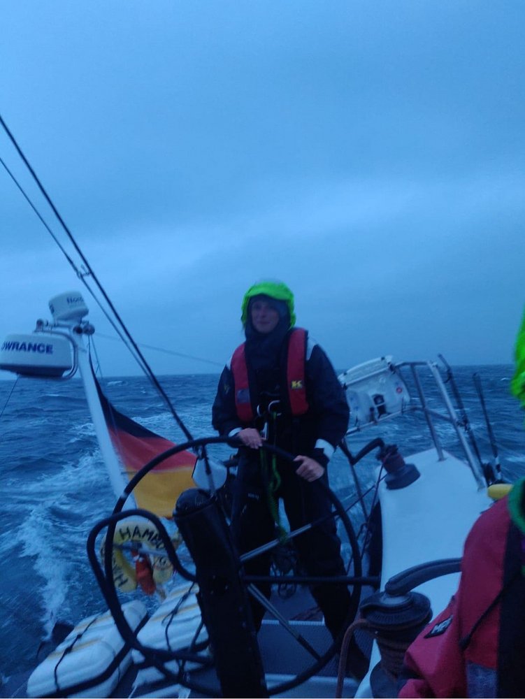 Die Reise Richtung Heimat beginnt mit einem perfekten Ablegemanöver ohne große Schwierigkeiten, daraufhin setzten wir das Großsegel mit einem Reff und die G4 im Vorhafen von Portland. Mit guten 25kt Wind und konstanten 11kt Fahrt rauschten wir die Küste von England entlang in Richtung Isle of White.