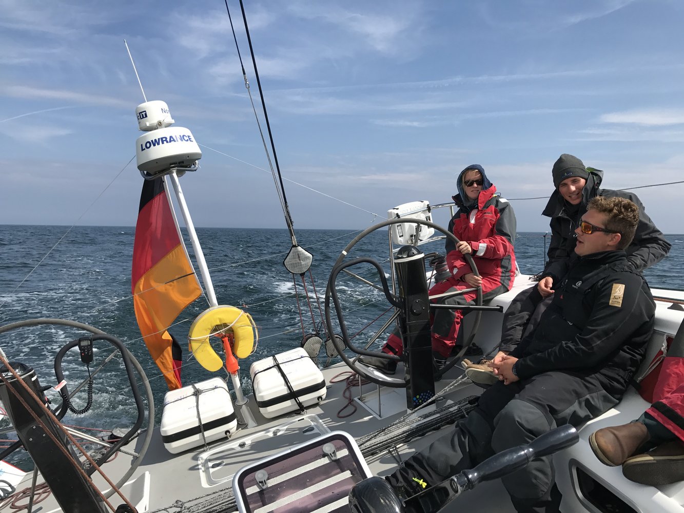Nach unserem kleinen Tagesstop in Visby liefen wir am späten Nachmittag wieder aus, um von den verbleibenden 400 Meilen bis Kiel möglichst schnell viele abzureißen. Wir starteten bei herrlichstem Sonnenschein und 12kn südlichen Winden auf eine Kreuz nach Süd-Öland. Leider verließ uns der Wind in den frühen Morgenstunden mal wieder und setzte erst am späten Vormittag aus Ost wieder ein. Grund für zumindest einen Teil der Crew Koje und Ölzeug gegen die Badehose zu tauschen und morgens um 8 Uhr ein Morgenbad in der Ostsee zu nehmen!
