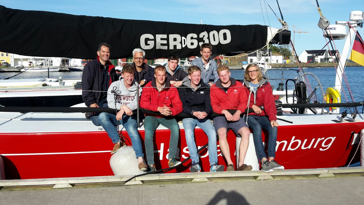 Die Sommertour mit dem Ziel Bergen startete im BKYC mit erstem vorsichtigen Kennenlernen und anschließendem Bunkern. Am Sonntag haben wir den Start der Tour auf zwölf Uhr verschoben, um nach einer Einweisung das passende Windfenster zu nutzen und abzulegen. Bei 20 Knoten Wind brachen wir in Richtung Nyborg auf. Wir hatten von Regen bis Sonne alle Wetterbedingungen und konnten uns als Crew super einspielen und weiteres Vertrauen ineinander fassen. Am zweiten Tag haben wir den Hafen erst um 15 Uhr verlassen, um die Nacht durch nach Skagen zu segeln. Bei Windstärken von 16 bis 22 Knoten auf Raum- bis Amwindkursen sind wir schneller als gedacht durchgekommen, sodass wir am frühen Dienstagmorgen in Skagen festgemacht haben und nach dem das Schiff aufgeklart war, haben alle bis auf die Führungsebene nochmal einen fünfstündigen Mittagsschlaf gehalten. Nachdem wir Skagen kulinarisch erobert hatten, ging es nach einem wohlverdienten Bierchen und leckerem Lachs in die Koje. Nach langer Überlegung haben wir uns entschieden am vierten Tag trotz eines drohenden Tiefdruckgebietes mit 6 bis 7 Bft von vorne mit Kurs Stavanger (ca.250 Seemeilen) auszulaufen. In der Realität trafen wir das Tief mit knapp 40kn Wind und 3-4m Welle vor der Küste Norwegens. Nach mehreren Stunden hoch am Wind entschlossen die Verantwortlichen schließlich doch noch -60nm vor Stavanger- nach Farsund abzulaufen -ca. 40nm hinter dem Wendepunkt. Der anschließende Raumkurs war mit viel Freude und Training am Ruder verbunden. In Farsund angekommen wurde der örtliche Pizza Service geentert und alle Reserven wieder aufgefüllt, auch ein anschließender Hafentag durfte natürlich nicht fehlen „ist ja ne Tour“.