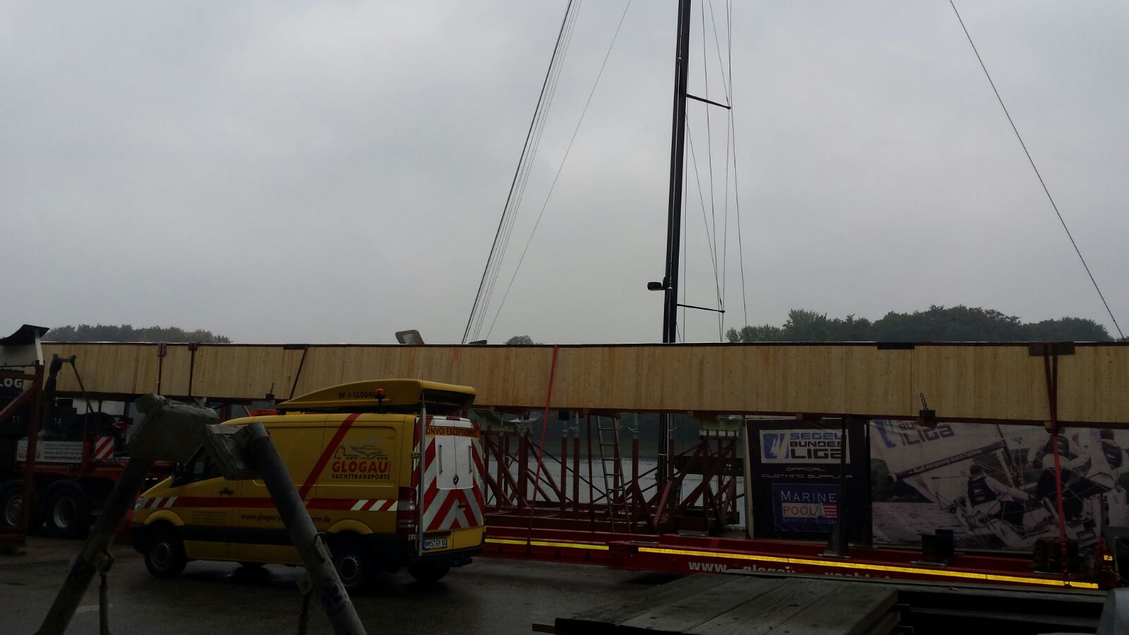 Die Vorbereitungen für den Transport der Haspa nach Sydney gehen in den Endspurt. Nachdem um unseren Mast eine für den Seetransport geeignete Kiste gebaut wurde, ist der Mast in der vergangenen Nacht mit dem LKW nach Bremerhaven gefahren worden.