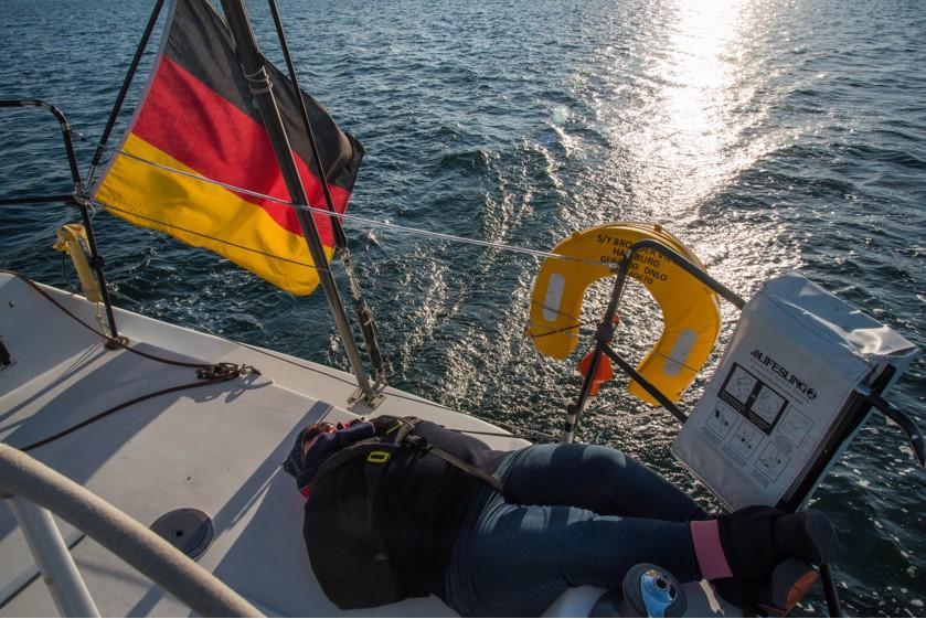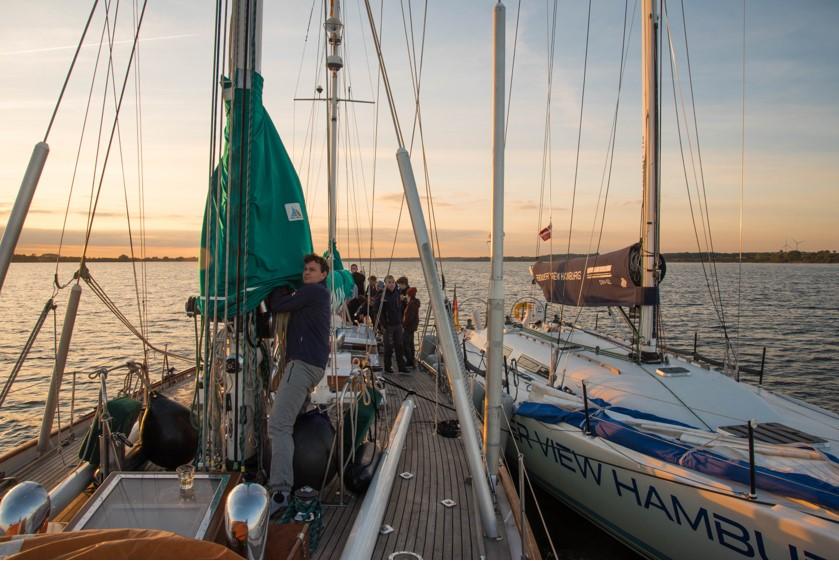 Mittwochabend in Sonderborg, für die einen der Start für die Schlussetappe der Herbsttour, für die Crew der Broader View Hamburg gerade einmal Bergfest. Die vergangenen Tage hatten wir guten Segelwind und sind viel gemeinsam mit den anderen Booten gesegelt. Für die nächsten Tage soll der Wind jedoch abflauen. Gut, dass die Germania IV noch eine spannende Idee für den nächsten Tag hat: Ankern. Eigentlich ein unübliches Thema für eine Herbsttour, gibt es doch genug Häfen die man anlaufen kann. Doch bei schwachem Wind bietet sich die geschützte Bucht hinter Kaegnes nahezu perfekt an, auch mal andere Dinge auszuprobieren.