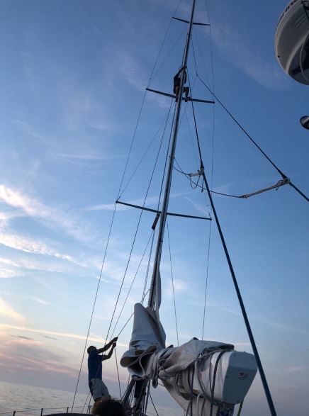 Der neue Tag empfing uns mit glattem Wasser, 15 Knoten Wind und einer wunderschönen Revierfahrt entlang der friesischen Küste, den Quasi-Hamptons der Rotter- und Amsterdamer Society. Querab Borkum griffen wir soeben nocheinmal beherzt in die Dry Food Schatztruhe. Dank der Watermaker-Leihgabe von Arnt und Sönke Bruhns (vielen Dank noch einmal, Jungs, stark gesegelt!) runter auf nun noch 40 Liter Frischwasser gossen wir Chicken Tikka Massala (Sieger der Dry Food Herzen) und Kaffee (danke nocheinmal an LATONA, ebenfalls sauber gesegelt!) auf und stärkten uns für die nun noch weniger als 60 von 3500 Seemeilen. Es bleibt spannend, Cuxhaven, wir kommen! Bis gleich, Eure Broader View Hamburg-Crew