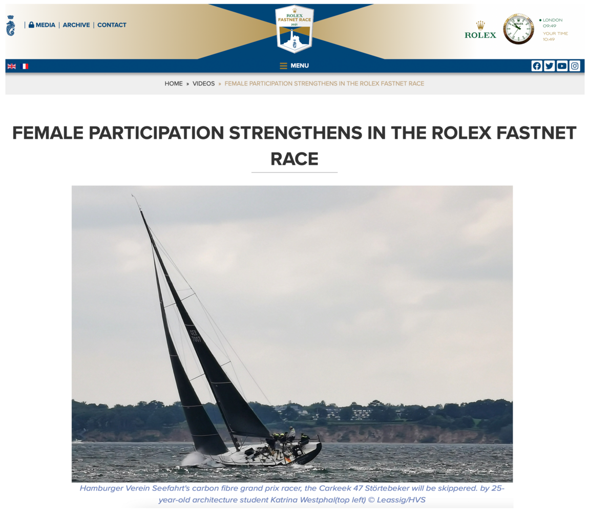Unser hoher weiblicher Anteil beim diesjährigen Rolex Fastnet Race fällt positiv auf. Skipperin Katrina Westphal im Interview mit dem RORC.