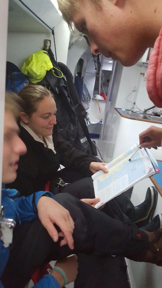 Während die einen heute das Steuern übten, andere die Navigation mit der Papierseekarte perfektionieren, sich ob der Kälte auf eine Polarexpedition vorzubereiten schienen oder unter Deck überlegten, mit welchem Bug angelegt werden sollte und welche Rolle dabei dann Vor- und Achterspring und -Leine übernehmen würden. Es kam keine Langeweile auf und Vieles wurde heute gelernt. Jetzt freuen wir uns alle über den Heizlüfter an Bord.