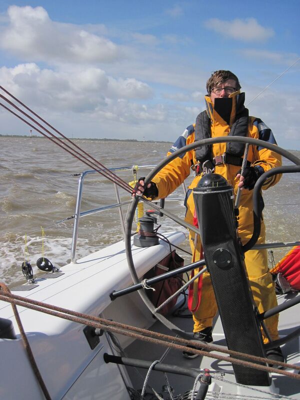 Es sollte die alljährliche Frühlings-Werbereise des Vorstands mit Vertretern anderer Vereine werden, die traditionell von Glückstadt nach Helgoland und zurück führt. Als die HASPA mit 10 Personen, davon Gästen aus den Vereinen DTYC, LYC, ASC und ASV und Niels Ostmeier "am Rohr" am Morgen des 22. April den Glückstädter Hafen verließ, war zunächst an das Setzen der Segel nicht zu denken. Die Elbe empfing uns mit Wind und Tide genau auf den Kopf, in Graupelschauern mit Böen bis knapp über 40 kn. (Wenn es gerade nicht schauerte lag der Wind zwischen 28 und 33 kn). So dampften wir erst einmal gegenan, kamen nur knapp von der Stelle und konnten erst nach Verlassen der Rhinplatte Nebenelbe, also etwa vor Brokdorf mit Fock 4 und 3. Reff Fahrt aufnehmen. Brunsbüttel war dann schnell passiert. Das Kippen der Tide half zwar der Fahrt über Grund, begann aber rasch gegen den Wind einen Wellengang aufzubauen, der zunehmend ungemütlich wurde, weil sehr hoch und steil. Auch die immer wieder durchziehenden Regenschauer (immerhin mittlerweile verlässlich flüssiges H2O, nicht mehr Graupeln) machten die Sache nicht einfacher. So reifte schweren Herzens die Entscheidung, im Sinne eines geselligen Abends auf die Helgoländer Knieper zu verzichten und stattdessen Cuxhaven anzulaufen, wo wir gegen 16:00 Uhr fest waren. Warum nach dem von Kaspar an Bord so herrlich und opulent vorbereiteten Italienisch-Deutschen Buffet inkl. heißer Suppe abends immer noch alle Hunger hatten, ist nur schwer zu ergründen, aber irgendetwas musste es im Seglerheim schließlich zum Bier geben.