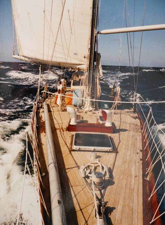 Meine Leidenschaft für das Hochseesegeln begann allerdings auf dem alten „Beker“. Unvergessen die Reise von Tromsö nach Hamburg 1989. Es ging unter widrigen Bedingungen mit sehr viel Wind gegenan, entlang der norwegischen Küste. Das Holzschiff machte viel Wasser, hatte aber eine tiefe Bilge und eine leistungsfähig Handpumpe. Der SatNav brachte nur alle paar Stunden einen Fix, so dass der Einsatz des Handfunkpeilers, terrestrische Navigation und genaues Koppeln an der rauen Schärenküste uns in Atem hielten. Auf der „Störtebeker II“ (ex „Rubin“, Abeking & Rasmussen-Bau, formverleimt, Sparkman & Stephens-Konstruktion) war noch alles schwergängig und heavy – das Großfall wurde als Drahtseil auf einer entsprechenden Winsch (mit Ratsche und Bremse) aufgewickelt. Doppelte Vorstage und schwergängige Stagreiter machten Segelmanöver besonders in schwerem Wetter anstrengend und langwierig. Andererseits konnte man bei fast jedem Wetter vernünftig kochen und an der halbkardanisch aufgehängten Back essen, ohne dass gleich alles über Stag ging (von Freeze-dried-Produkten war noch nicht die Rede).
