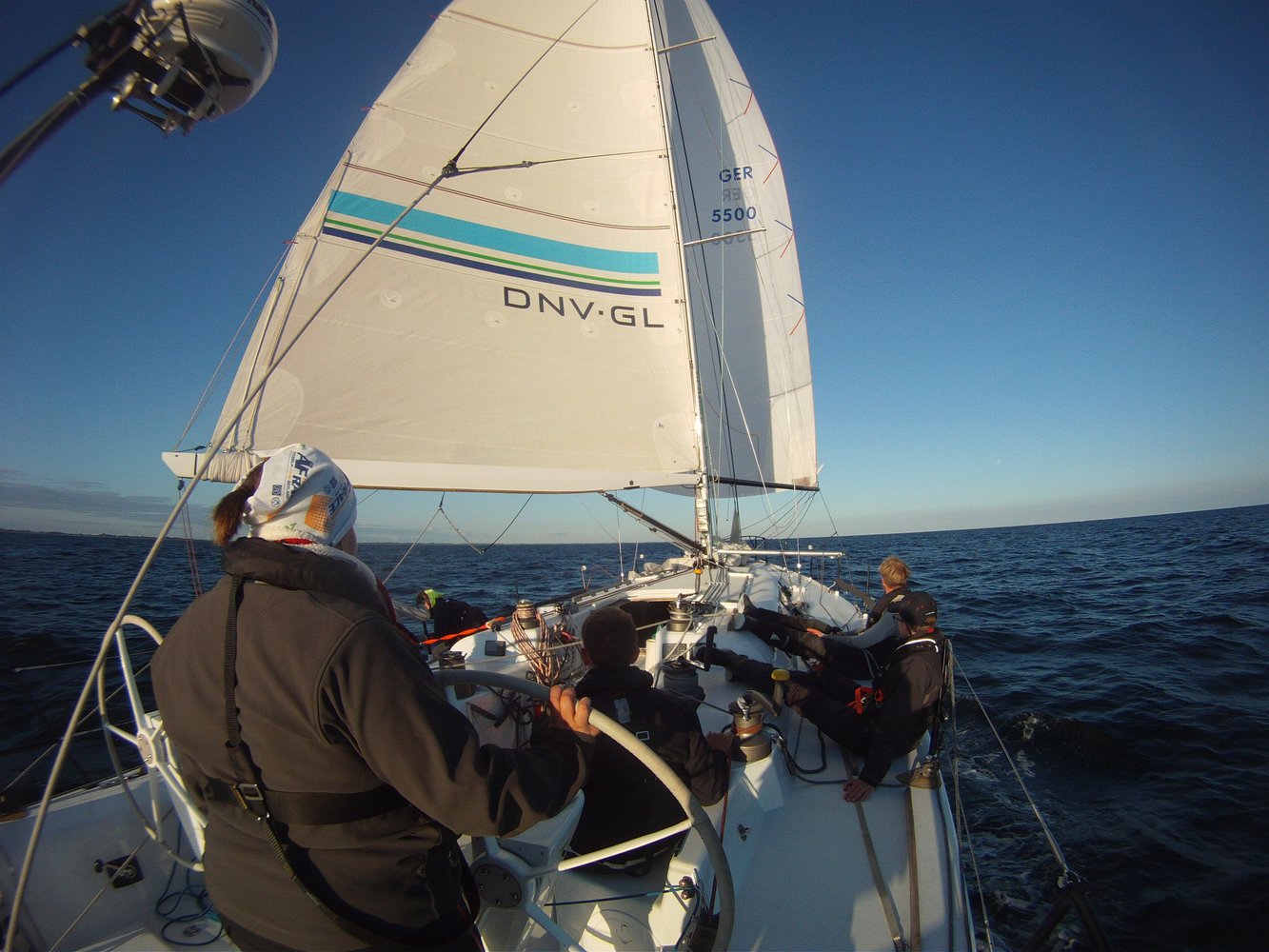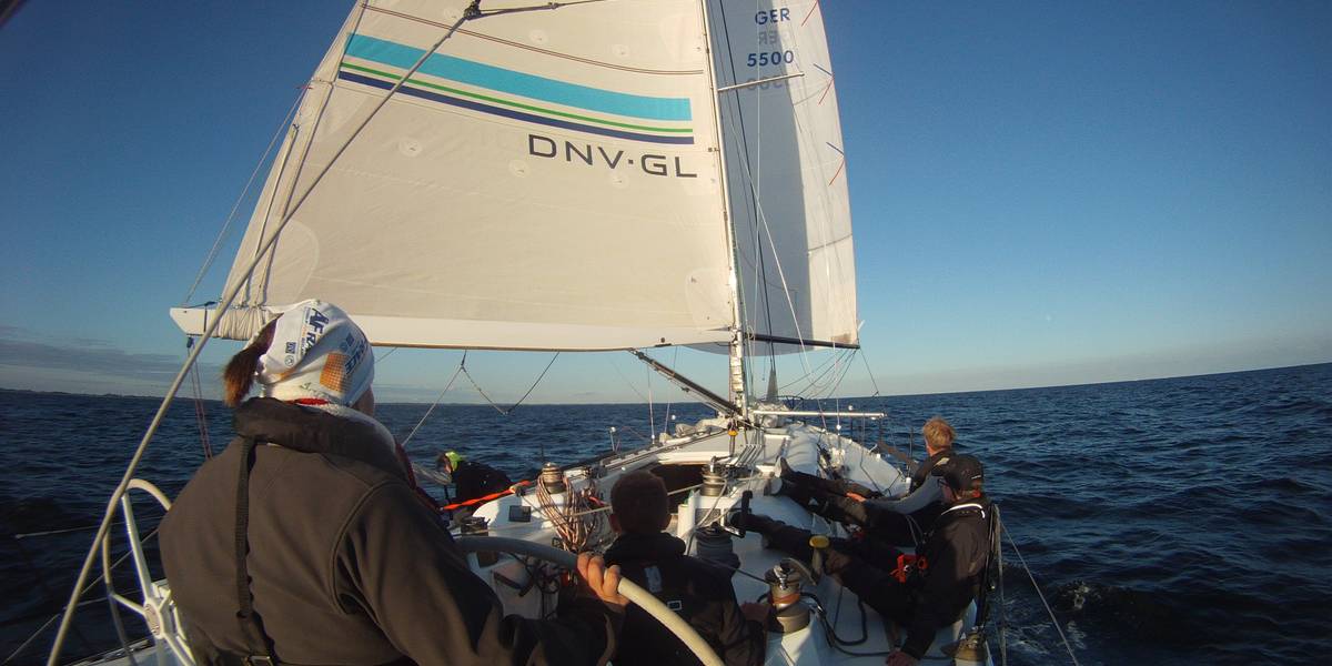 Na gut, okay, ich gebe zu ganz bei Null waren wir nicht auf der Linie, aber an der Spannung wurde nicht geschönt. Und für eine ziemlich bunt zusammengewürfelte Crew, die obendrein erstaunlich jung war, haben wir einen Start hingelegt, der sich sehen lassen kann. Von Kiel aus ging es Richtung Lyo, wo die erste Marke umrundet werden wollte. Hier war es an Rasmus die erste Ganzkörpersalzwasserdusche an unseren Vorschiffsmann Nis zu verteilen. Weiter unter Langeland entlang mit nem heißen Ritt nach Spodsbjerg und den letzten Schlag durch die Dänische Südsee nach Rodby. In der Nacht wartete eine elendig lange Kreuz auf uns, die wir aber dank sternenklarem Himmel gut durchstanden. Kurz nach 6 Uhr ertönte dann das erlösende Tuten der Wettfahrtleitung am Kieler Leuchtturm - Wir sind im Ziel!