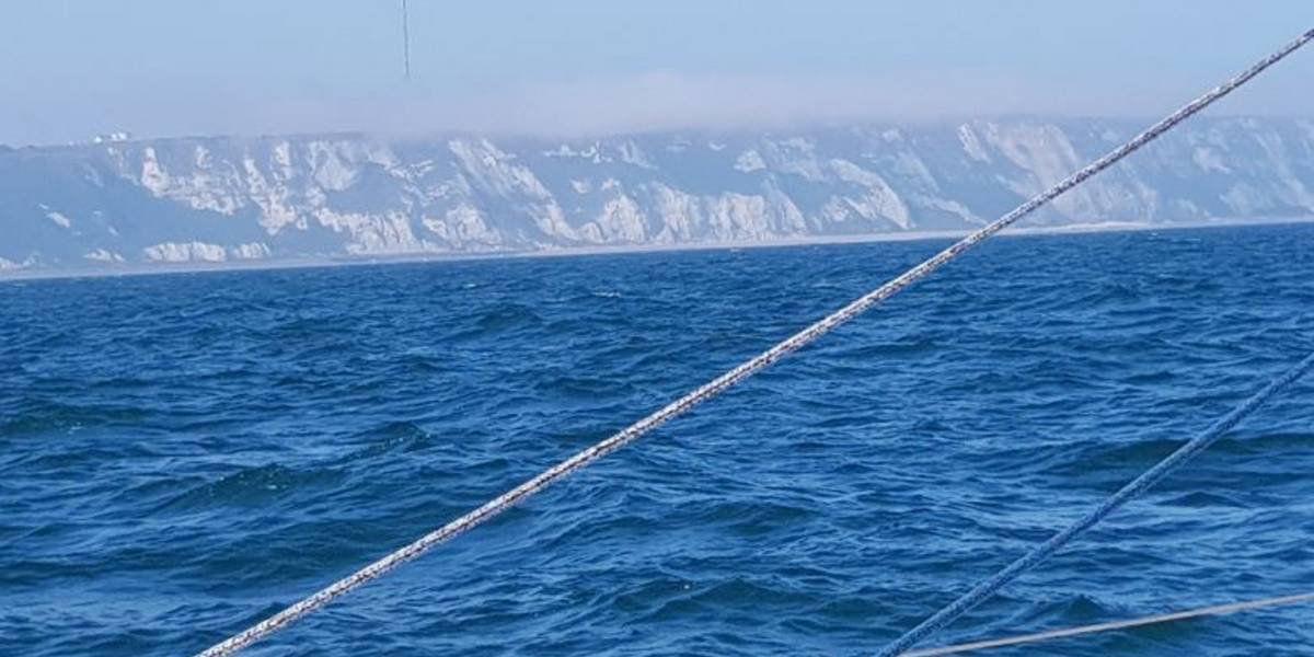 Nach ereignisloser Nacht konnten wir dann heute Morgen unter den wachsamen Augen der 3000 Gäste an Bord der AIDA PERLA sowie der alten Bekannten der WAPPEN VON BREMEN, wohl auch nach Cowes segelnd, die Isle of Wight hinter uns lassen und mit einen weiteren, vollkommen uninteressanten (für Laien jedoch sicher atemberaubenden) Sonnenaufgang die neue Woche begrüßen. Noch immer im kleinen Weißen kommen wir mäßig voran, doch das Wetter und die gute Stimmung an Bord entschädigen für Vieles. Und das trotz zur Neige gehender Vorräte: Der letzte Honig findet sein würdiges Ende auf dem vorletzten Brot aus dem Bordbistro, allein heute haben wir fast stündlich neuen Kaffee (Courtesy of LATONA) gekocht. Nach dichtem Nebel vor der Meerenge von Dover klarte es am späten Nachmittag rechtzeitig auf, um die spektakulären Kreidefelsen von Dover freizugeben, die mit dem Kalkberg von Bad Segeberg auch ohne Indianer wirklich gut mithalten können.