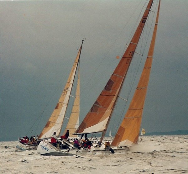 So ein Schiff war ich noch nie gesegelt: IOR-Riss, Unmengen an Winschen an Deck, für jede Winsch eine eigene Klampe, Grinder, 2 vergleichsweise kleine Cockpits, 2 Spibäume, Jockeypole, keine Fenster, 3 Rohrkojen übereinander und ein nackter Alurumpf innen, aber immerhin eine Tür vor dem Klo. Das einprägsamste an der „Laura“ war der unverwechselbare Geruch unter Deck: ein olfaktorisches Highlight aus Hydraulik- und Motorenöl, Klo, 12x Ölzeug, 12x Leute, Kaffee, Salami und/oder Käse und leicht feuchte Rohrkojenbezüge aus Baumwolle. Den Geruch vergisst man nicht...