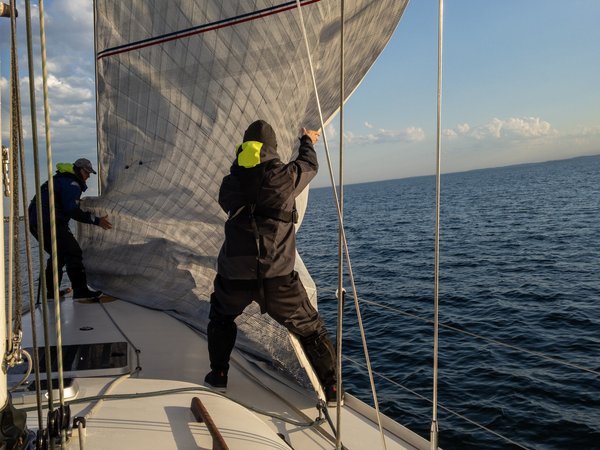 Am darauffolgenden Donnerstag zeigte sich die Ostsee von einer ganz anderen Seite: Statt Ölzeug und Lifebelt standen heute kurze Hose und viel Sonnencreme auf dem Programm. Nach Missverständnissen hinsichtlich der Aufstehzeit, falsch und ungewollt gestellten Weckern - zusammengefasst also etwas Chaos am Morgen - sind wir früher als „geplant“ aus Assens los. Bei achterlichem Wind hatten wir einen wunderbar sonnigen Segeltag mit vielen Manövern, wozu auch Spihalsen zählten. Nach dem verregneten und windtechnisch unbeständigen Vortag, an dem die durch abgesagtes Færdern und Rund Skagen ohnehin leicht mitgenommene Stimmung weiter litt, war das genau das, was wir gebraucht haben. Segelwetter wie aus dem Lehrbuch! Crew und Schiff in bester Laune und Verfassung. Abgeschlossen wurde dieser erfolgreiche Segeltag in Kolby Kås auf Samsø. Angelegt wurde bereits um 17 Uhr, sodass am späten Nachmittag noch einige Sachen ohne Zeitdruck erledigt werden konnten: Schiff klar machen, Umgebung erkunden, einkaufen. Dank freundlicher Insulaner mit schnellen Sprintern konnten die 7 km zum und vom Supermarkt mit deutlich über 100 Sachen in Rekordzeit bewältigt und der Einkauf erledigt werden. Nach getaner Arbeit verschlug es einige noch auf einen kurzen Sprung in die lauschige Ostsee. Den grandiosen Tag konnten wir mit Spaghetti und einem oder mehr Kaltgetränken ausklingen lassen.