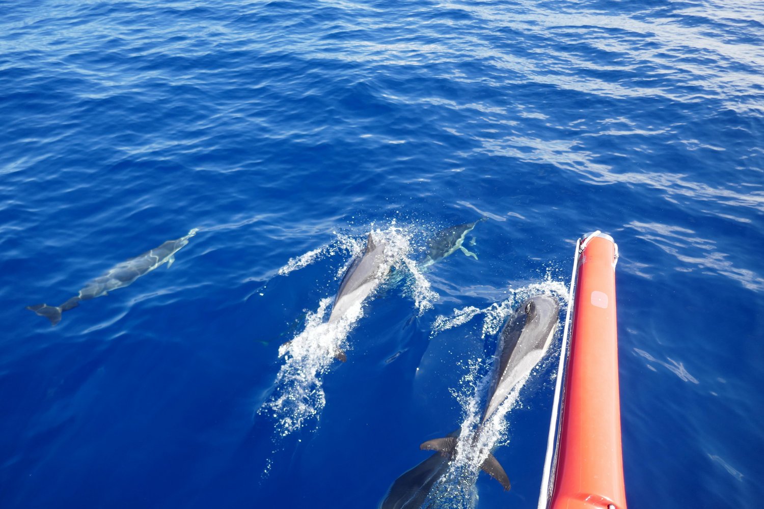 ein Tag voller Höhen und Tiefen geht zu Ende. Eigentlich ging alles so gut los. Bei immerhin 12 Knoten Windgeschwindigkeit und Sonnenschein konnte die HASPA ihren Weg gen Norden fortsetzen und wurde sogar ein Stück weit von Delfinen begleitet.