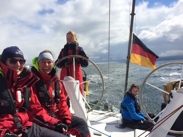 Nachdem wir den karibischen Wolkenbildern und dem einen oder anderen Grupelkörnchen entflohen sind, konnten wir bei drehenden Winden unsere Fähigkeiten bei ständigen Segelwechseln optimieren. Leider gewann aber immer wieder die Stahlgenua die Oberhand. Dafür wurden wir von der Sonne verwöhnt und ließen es uns gut gehen. Verschiedene Salate wurden spontan gezaubert und fanden ihren angestammten Platz in der Spüle, eine fröhliche Stimmung beherrschte die BROADER VIEW HAMBURG und schien sogar den Schleusenwärter angesteckt zu haben, der uns sehr charmant und kurzfristig einen exklusiven Schleusengang verschaffte.