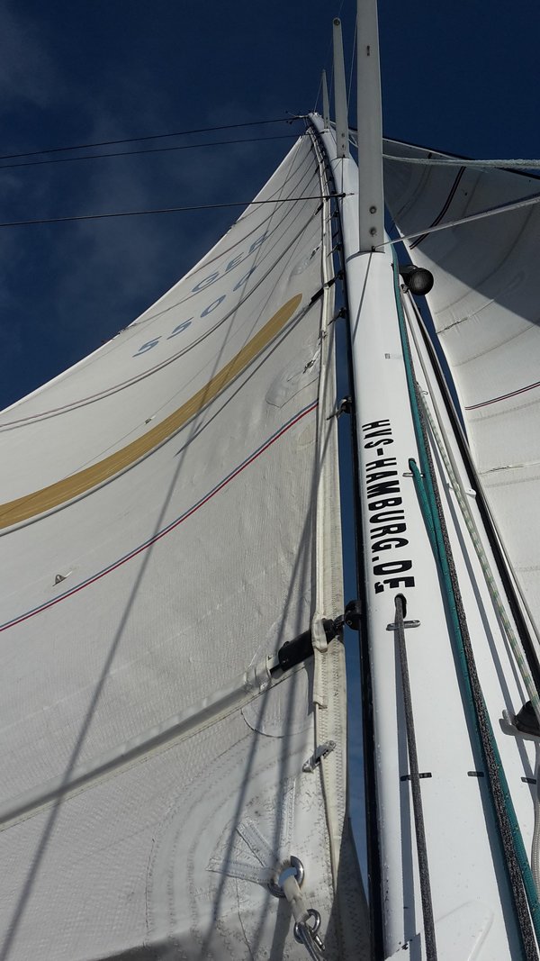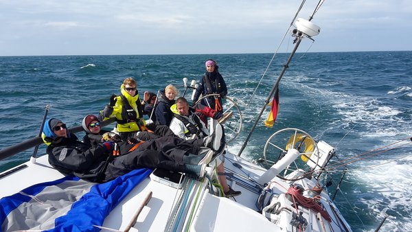 Im Solent unter Landabdeckung konnten wir bei Traumwetter und leichter Brise verschiedene Spis ausprobieren. Als wir in den Kanal abbogen überraschte uns eine steife Brise, stärker als vorhergesagt. Die Windrichtung stimmte jedoch - Westwind bedeutete Anlieger nach Cherbourg, nur der Stromversatz musste entsprechend vorgehalten werden. Wir hatten einen tollen Segeltag mit Rauschefahrt und planen jetzt bei Tortellini die nächsten Etappen. Viele Grüße von Bord, Gerd, Tommy, Ricky, Anna, Henrike, Bende, Max und Moritz.