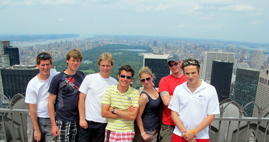 Heute hatten wir unseren Hafentag und sind mittlerweile zu neunt an Bord. Während Jérôme bereits nach dem Frühstück zu uns stieß, landeten Christoph und Andrés erst am späten Nachmittag. Der Freitagabend war derart erfolgreich, dass wir mit vielen nützlichen Tipps von Alan und Brian zum Stadtrundgang aufbrachen. Auf dem Programm standen Wall Street, Battery Park, der Bulle, Ground Zero in Downtown und die Aussichtsplattform "Top of the Rocks" im Rockefeller Center, Central Park und Times Quare. Die Möglichkeit unsere Crew auf dem Times Quare zu verewigen, ließen wir uns natürlich nicht nehmen ;-)