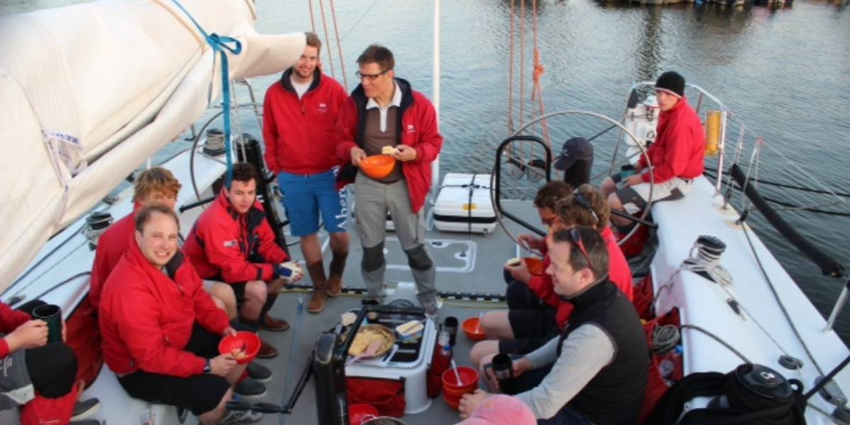 Am nächsten Morgen ging es dann früh aus den Kojen, da der erste Start für 6:30h angesetzt war. Wir starteten um 6:50h im dritten Start. Im Laufe der Wettfahrt wurde der Wind immer weniger, so dass es eine Bahnverkürzung gab. Ziel war vor Brunsbüttel und so folgten noch drei Stunden Motorboot fahren gegen die Tide, bis wir in Cuxhaven ankamen. Die Leichtwindregatta verlief recht erfolgreich für uns und wir ersegelten nach berechneter Zeit den dritten Platz, den wir abends bei der Eröffnung der Nordseewoche feierten.