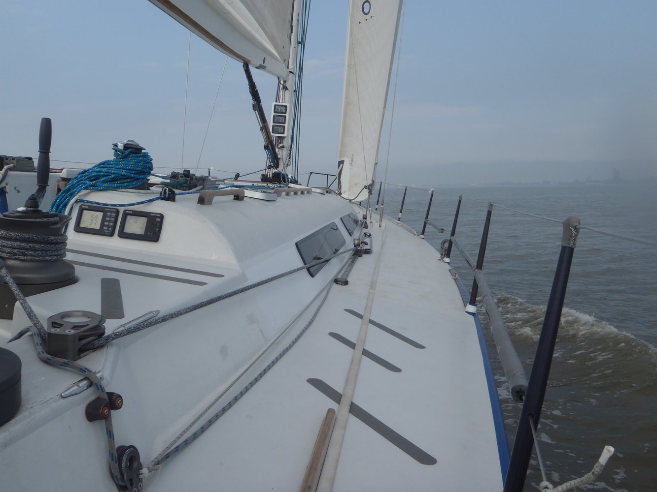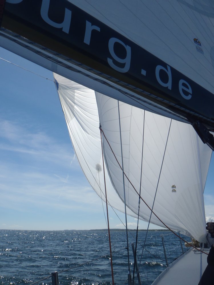 Ein paar Kursänderungen später mussten wir dann auch leider das Groß bergen und nur noch motoren, da der Wind genau von vorne kam.