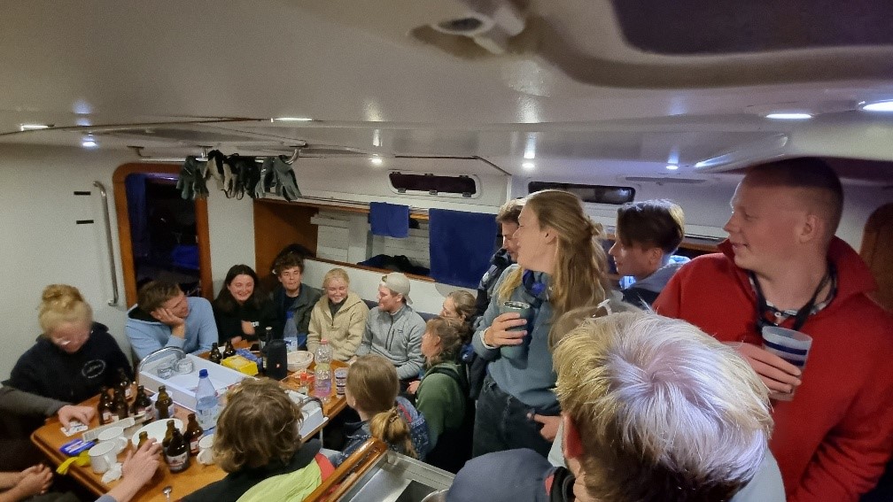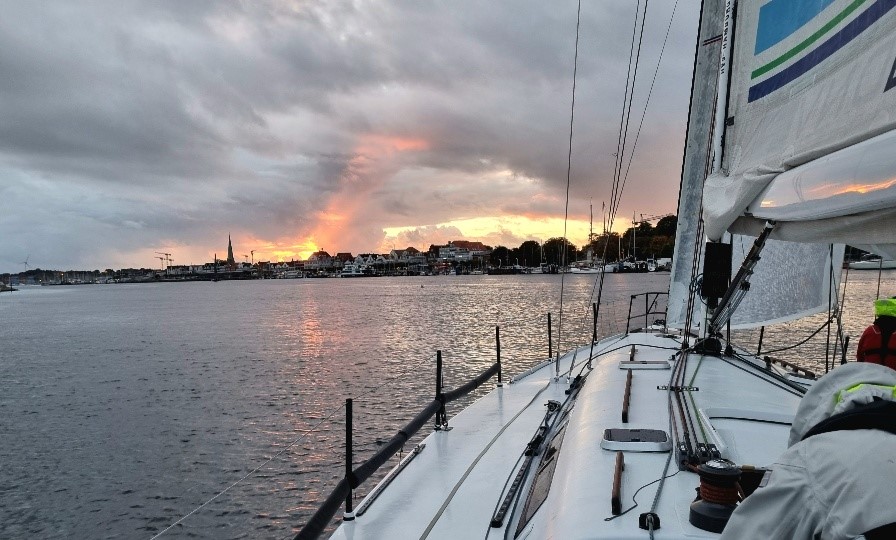 Dritter und letzter Tag - Schlusssprint nach Kiel, der Wind bläst immer noch mit 26 Knoten. Zum Glück langt es für einen Anlieger bei ordentlicher Welle. Das enervierende Weckprozedere startet um 7 Uhr - far too early. Mir geht es überhaupt nicht gut - Grund unbekannt. Da müssen wir jetzt alle durch; soll die Jugend zeigen, was sie kann - ich werde mich bedeckt halten. Und es wird wieder zornig. Interessanterweise radiert es zunehmend weitere Crewmitglieder aus, unüblicherweise seefeste Kandidat:innen. Wir rekapitulieren, dass bereits am Morgen des Vortages ein Crewmitglied die Rückreise angetreten hatte, da ihm hochgradig unwohl war. Es liegt die Vermutung nahe, dass neben Kälte, Übermüdung und Alkohol noch ein kleiner Virus im Spiel war, denn selbst am Abend - als das Schiff schon längst im Hafen lag - haben noch Crewmitglieder über den Chat die weiße Flagge gehisst. Alle haben überlebt, um eine Erfahrung reicher. Vielleicht sollten wir langsam davon Abstand nehmen, die PET Getränkeflaschen auf der Kante durchzureichen und endlich zu umwelt- und gesundheitsschonenden Alternativen greifen.