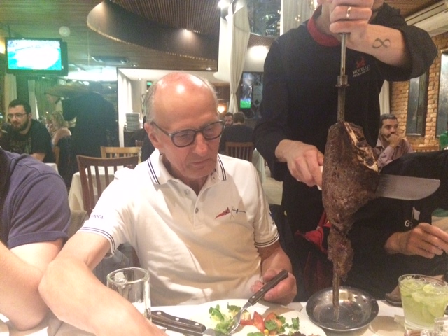 Bevor morgen noch ein letzter Kraftakt mit dem Eintreffen des Containers inklusive der heißersehnten Regatta-Segel ansteht, geht es gleich noch in eine Churrascaria um die Ecke. Wir wollen in Ruhe nochmal wichtige Punkte durchgehen, und, was viel wichtiger ist, uns nochmal ein saftiges Steak reinziehen.