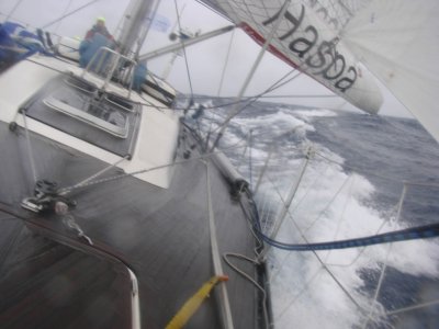 Es waren dramatische Momente auf der „Norddeutschen Vermögen Hamburg“, als eine gewaltige Welle über das Deck fegte und den Heckkorb in Kleinteile zerlegte. Die Wettfahrtleitung erhielt kein Signal mehr und erkundigte sich über Satellitentelefon. „Alle unverletzt, aber die Genua ist aus dem Vorstag gefetzt und der Heckkorb zerstört, daher gibt der Race Tracker auch kein Signal mehr“, hieß es von Bord.