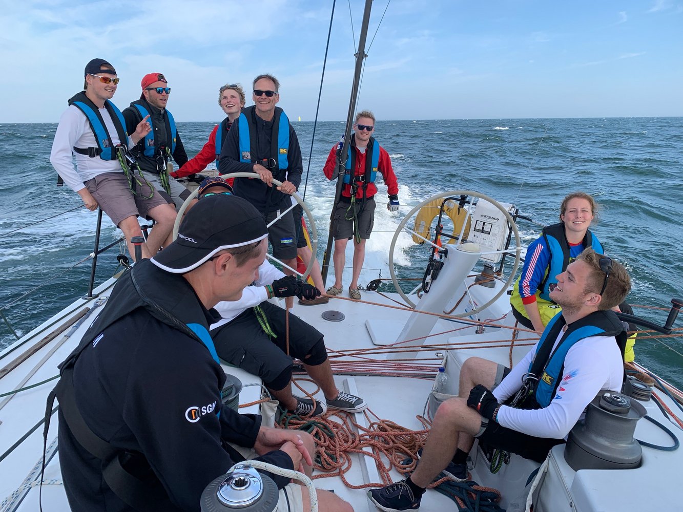 Trotz kleinen Starterfeldes von nur fünf Schiffen kam beim Start wahres Racefeeling auf - wahres Big Boat Racing. Die Abstände zwischen den Rümpfen erinnerten allerdings eher ans Jollensegeln bei der Bahnmarkenrundung. Schnell ging der S4 nach oben, wurde allerdings schnell durch den S5 ersetzt. So fuhren wir der Nacht entgegen und die Geschwindigkeitsrekorde wurde im Minutentakt gebrochen - zuletzt lag er dann bei gut 23 Knoten. Die Primary lief, sehr zum Leid der "schlafenden" Freiwache, auf Hochtouren - jede Welle wurde unter vollem Einsatz angepumpt. Nach der Rundung der nördlichsten Bahnmarke änderten wir den Kurs gen England, wechselten auf G2, was wir im Nachhinein etwas bereuten. Die Desna tauchte auf einmal in Lee auf und fuhr an uns vorbei. Hier wäre ein anderes Vorsegel vielleicht die schnellere Option gewesen. Bei weiter abnehmendem Wind passierten wir einen Windpark nach dem anderen, wechselten rege die Vorsegel um schließlich vor Dover komplett zum Stehen zu kommen. Einige frustrierende Stunden später kam der angesagte Ostwind und drückte uns wieder in die richtige Richtung. Desna, BroVi und Haspa waren alle dicht beisammen und es startete ein Drag Race in Richtung Cowes. Dieses wurde letztlich noch zu einem wahren Kraftakt, da uns ein Tiefausläufer Wind aus Süd mit bis zu 45 Knoten bescherte. Mit erstem Reff und G4 kämpften wir uns weiter und mussten uns leider der Haspa geschlagen geben - dafür sind wir jetzt im Starkwindsteuern äußerst geschult. Wir liegen jetzt in Cowes in Gesellschaft einiger anderer deutscher Schiffe und bereiten uns auf den Start am Samstag vor. Aktuell sieht es vorallem für den Start nach Leichtwind aus - wir sind gespannt, welches Wetter uns Rasmus bescheren wird. Viele Grüße von der Isle of Wight schicken Skipper Erik samt Crew